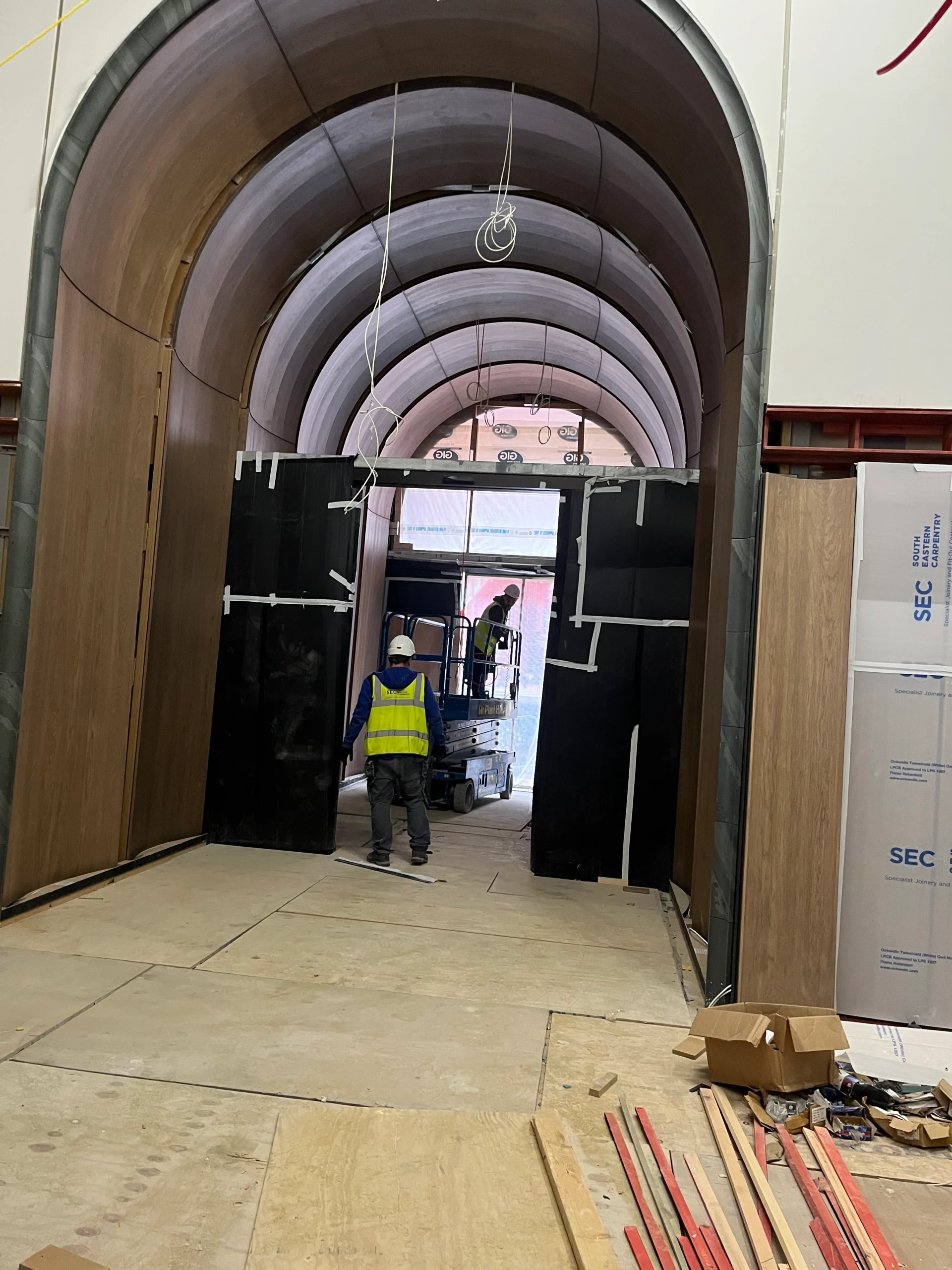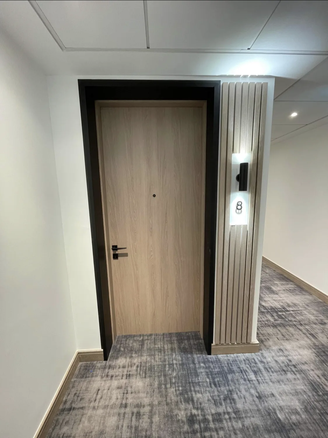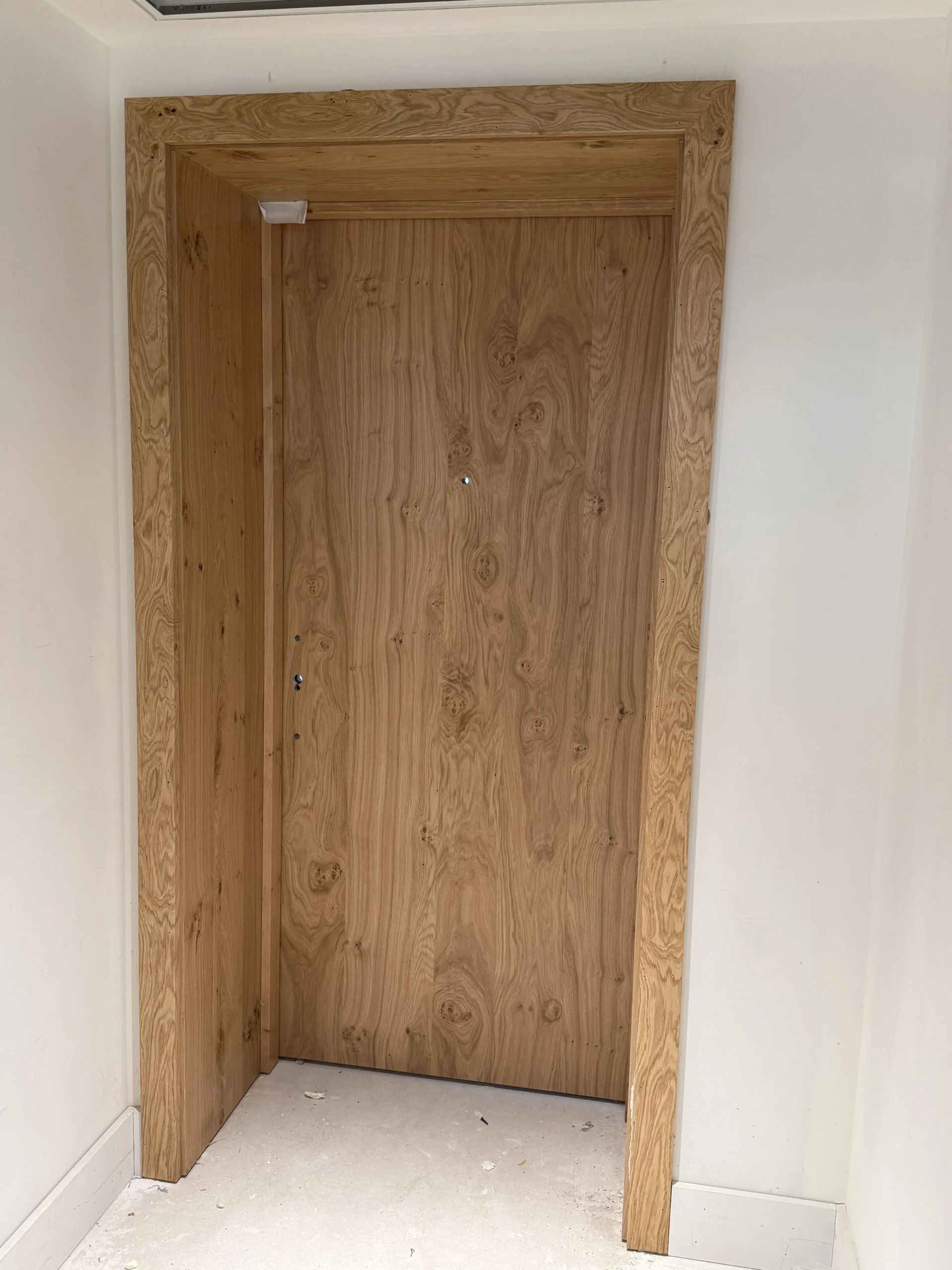 Proiectul a constat în montarea ușilor de intrare pentru camerele unui hotel, utilizând furnir de stejar european.